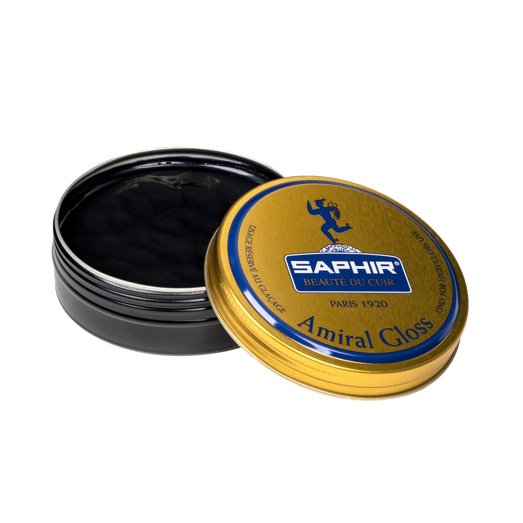 Amiral Gloss es un producto avanzado destinado a obtener un glaseado más rápido y fácil que con el simple uso de Pasta de lujo Saphir. Es posible obtener un brillo espejo con pastas regulares de Saphir, pero requiere un poco técnica más controlada para hacer el glaseado que el uso de Amiral Gloss formulado especialmente para este fin.