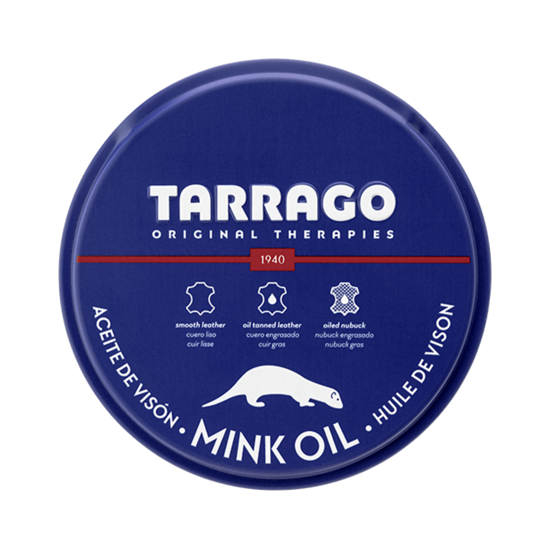 Tarrago Mink Oil está enriquecido con aceite natural de visón y ceras minerales. Protege y nutre el cuero, evitando que se agriete, asegurando su protección impermeabilizando la superficie.