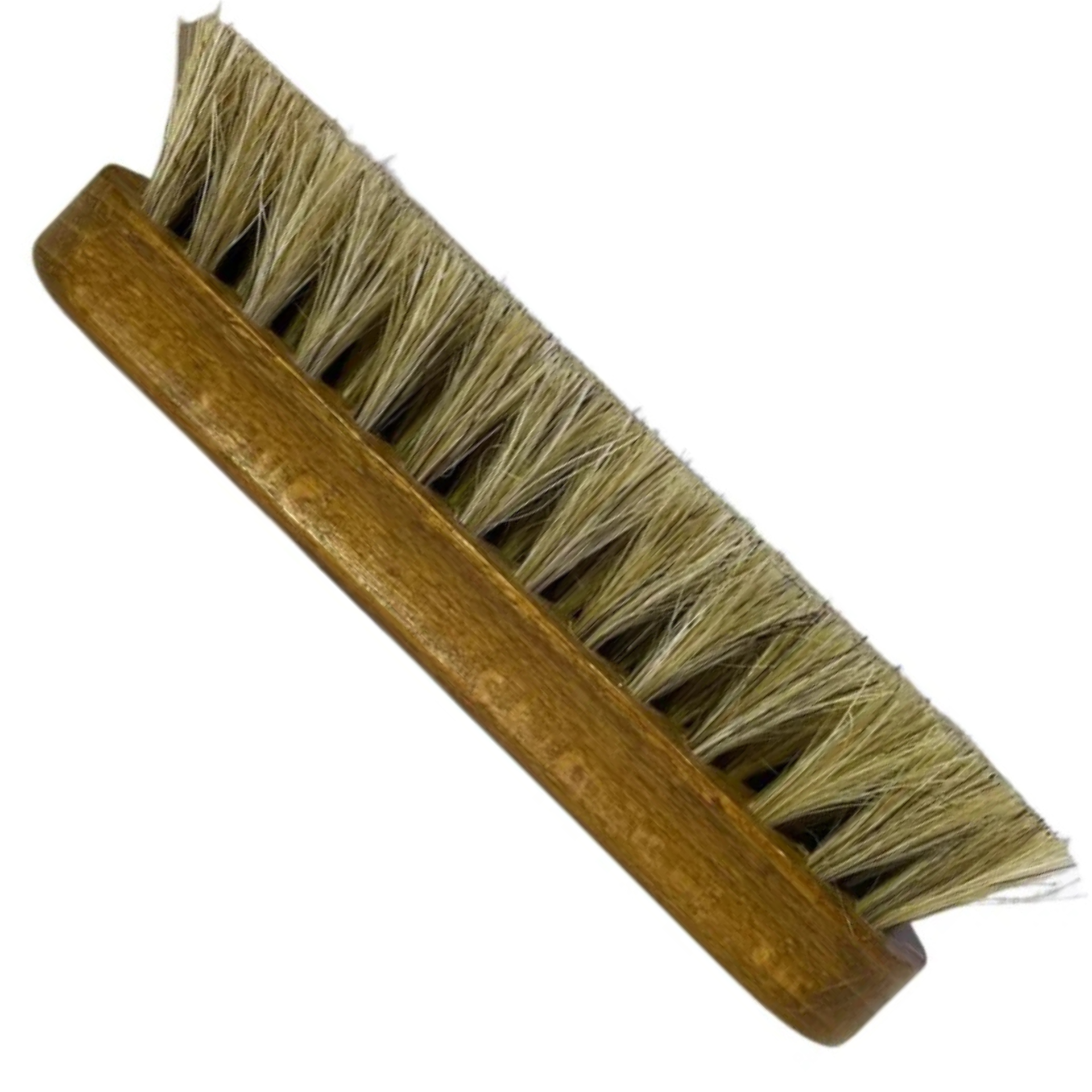 Escobilla con cuerpo de madera y pelo crin de caballo. Este cepillo es especialmente indicado para lustrar el calzado.