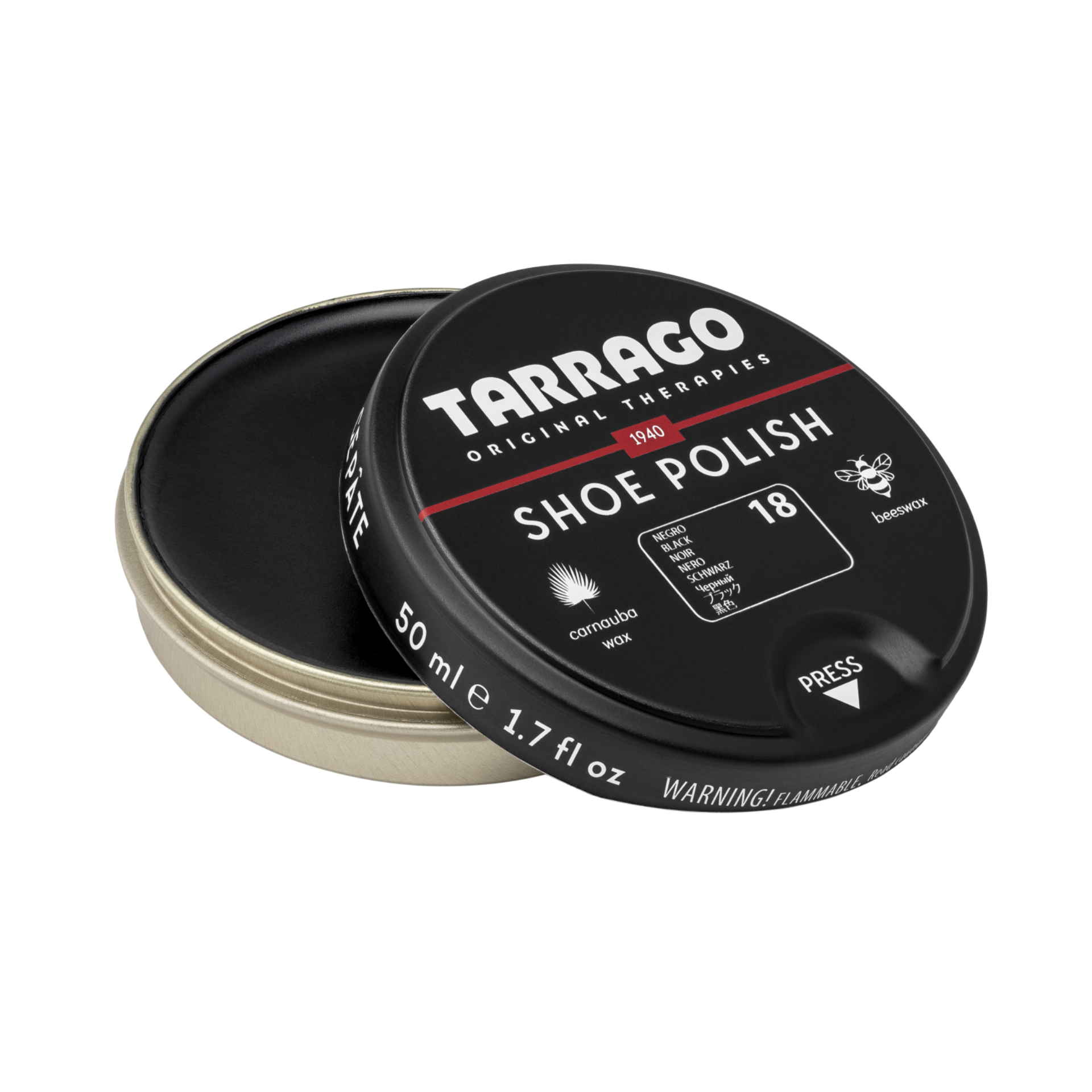 Betún pigmentado a base de cera natural que nutre, da brillo, color y ayuda a mantener la flexibilidad del cuero liso y sintético. Disponible en 50 ml. y 100 ml.