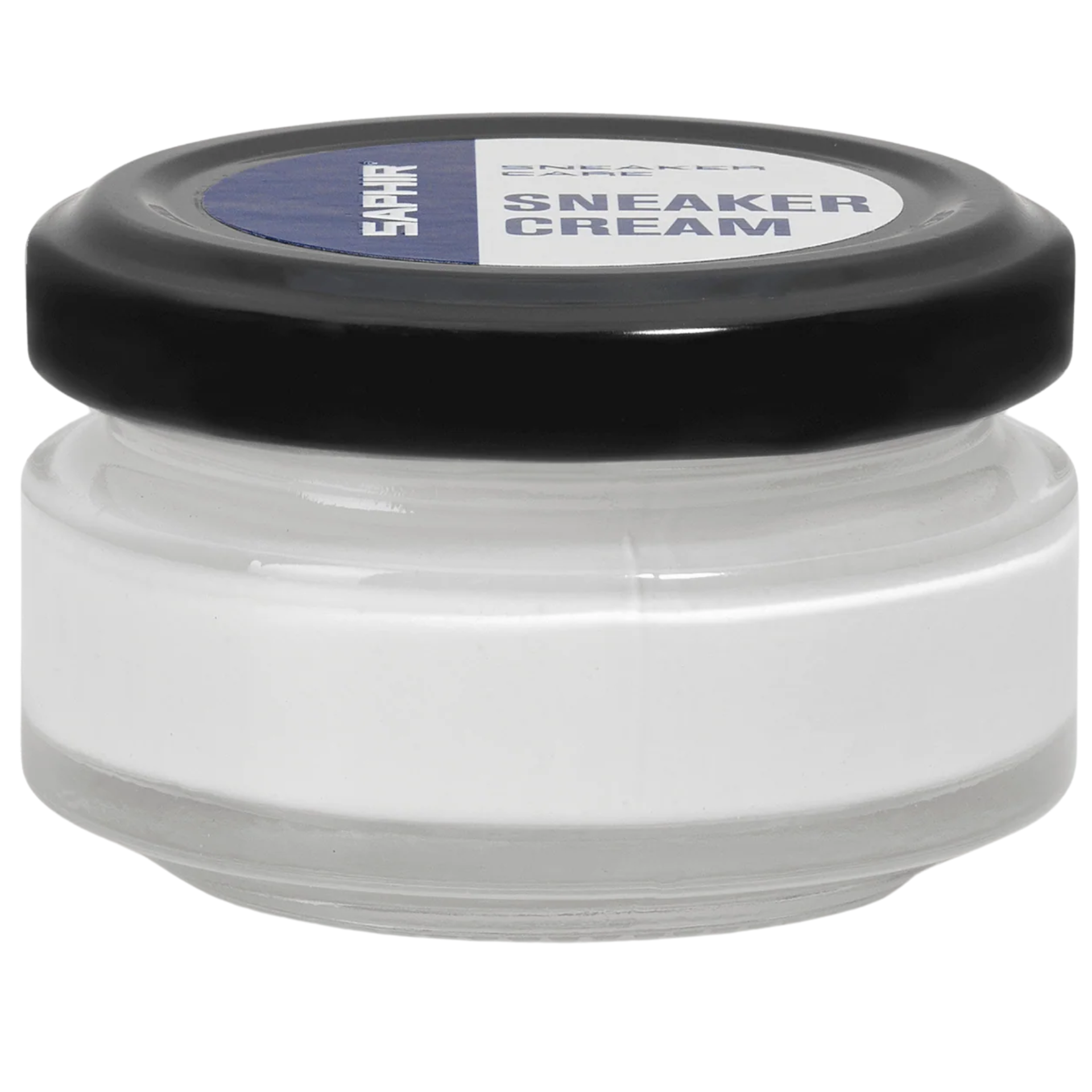 Sneaker Cream nutre, brilla y protege gracias a su mezcla de cera de abejas, aceite de albaricoque y lanolina. Su fórmula con alto contenido de pigmentos proporciona la solución perfecta para el cuidado y restauración de zapatillas marcadas o rayadas. Reaviva el aspecto original del cuero realzando sus colores, sin riesgo de manchar los puños de los pantalones.